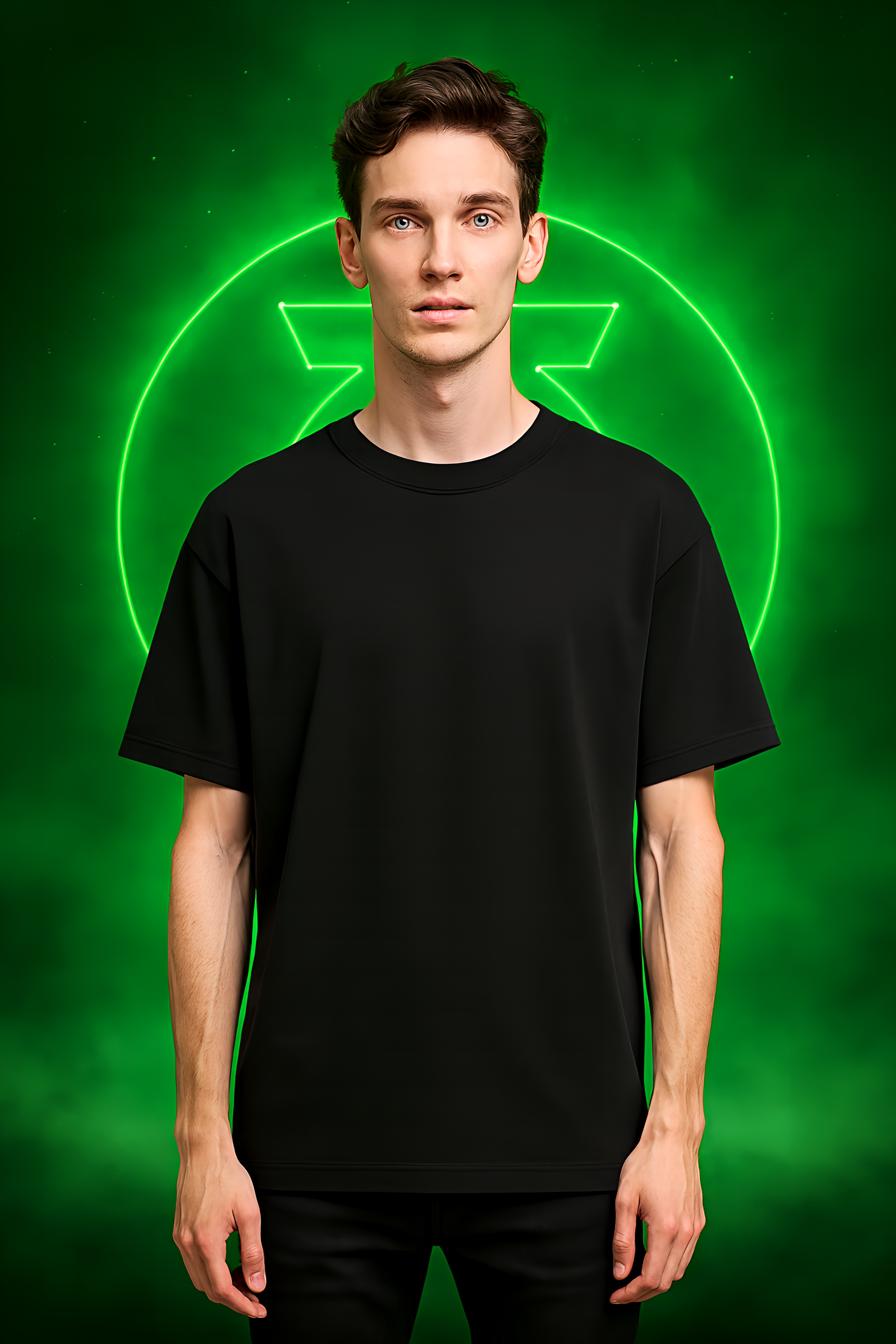 Summoned from the cosmic forge of willpower and rebellion, the Green Lantern Edition oversized tee is a tribute to mythic resolve. Cloaked in deep black, this premium cotton silhouette floats against a luminous green vortex—where sci-fi meets streetwear.